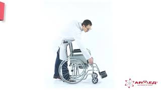 Кресло-коляска с санитарным оснащением, активного типа предназначена для использования в туалетных или других помещениях при самообслуживании и уходе за инвалидами с частичной утратой функций опорно-двигательного аппарата, используется как передвижное санитарно-гигиеническое приспособление.