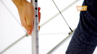 Массажный стол-чемодан со складной панелью из синей экокожи. Подковообразный, регулируемый по углу наклона подголовник снабжён регулируемой мягкой полочкой для рук, а съёмные расширители ложа обеспечивают комфортное размещение пользователя в любом необходимом положении, благодаря закрывающемуся инсертом лицевому люверсу. Телескопическая регулировка высоты ножек на пружинно-шариковых фиксаторах позволяют установить стол на высоте, удобной как клиенту, так и массажисту.